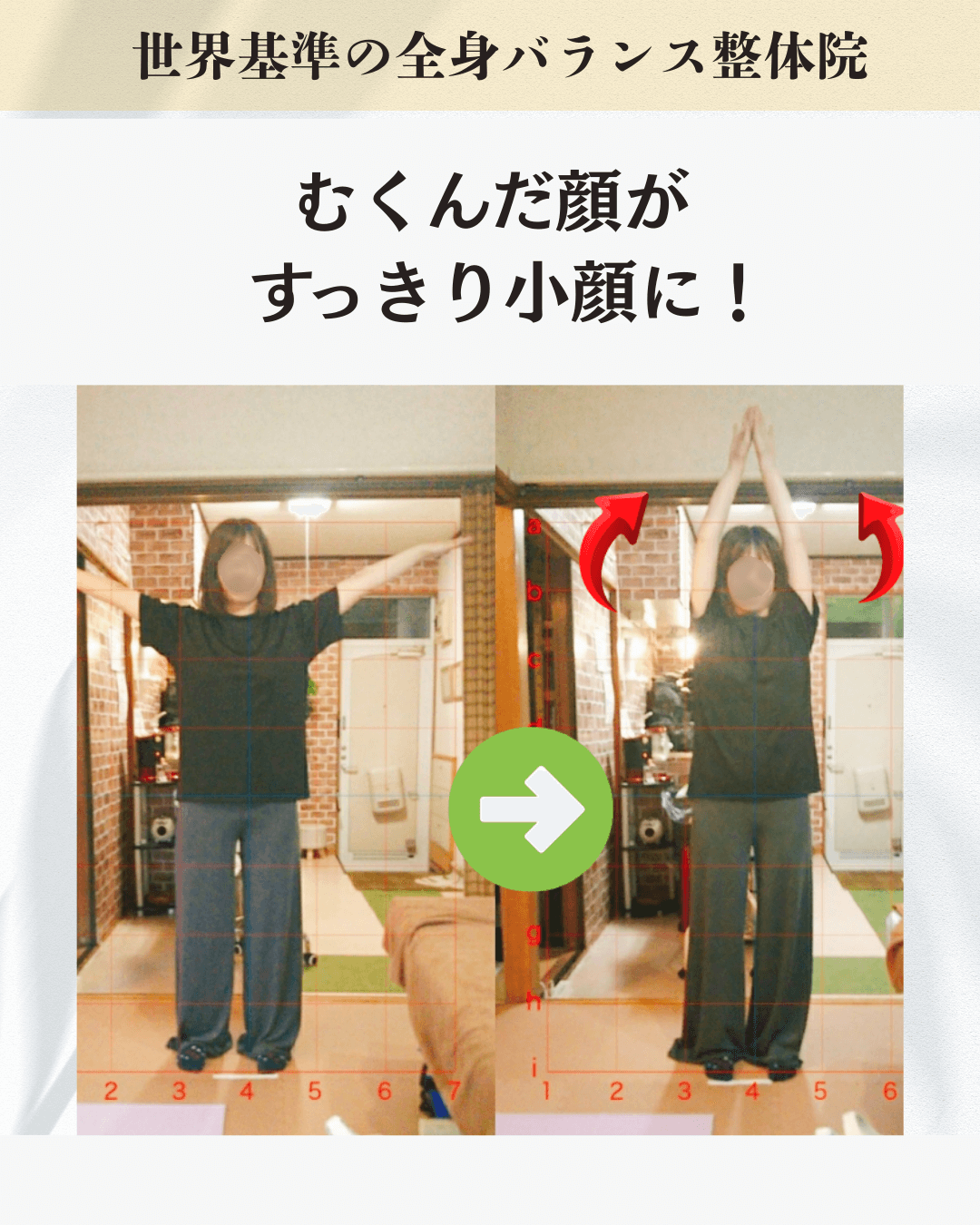 A7: 顔だけでなく全身のバランス調整をセットで行うため、フェイスラインの変化も体感しやすいです。