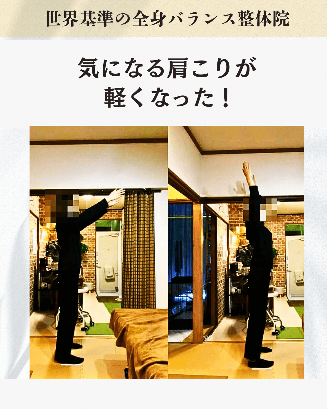また、整体院で体のバランスを整えていても、日常のクセ(足を組む、片足立ち、肩掛けカバンの習慣など)が積み重なると再び歪みが生じます。